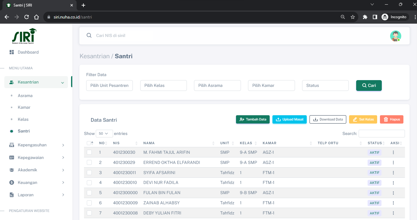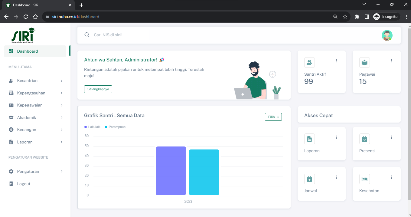 Sebuah platform yang dirancang untuk sistem akademi di Pesantren Nurul Hayah dimana aplikasi dibuat untuk multi cabang dilengkapi dengan berbagai fitur dalam manajemen pesantren dan keuangan.